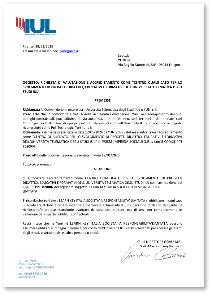 By combining LEARN KEY Institute Italy’s professional training expertise with IUL University’s accredited higher education framework, the partnership aims to create innovative, career-oriented academic pathways aligned with international standards.